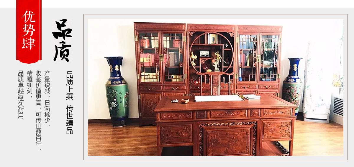 東陽市大聯(lián)福林堂紅木家具廠座落于素有“東方好萊塢”之稱的國家AAAAA級影視旅游基地橫店影視城, 是一家集開發(fā)、設(shè)計(jì)、生產(chǎn)、銷售、服務(wù)為一體的綜合型企業(yè)。本公司匯集一批具有豐富生產(chǎn)經(jīng)驗(yàn)的能工巧匠,具有豐富的紅木家具設(shè)計(jì)生產(chǎn)經(jīng)驗(yàn)。本公司產(chǎn)品主要選用紫檀、花梨、酸枝、雞翅等優(yōu)質(zhì)紅木,并采用純天然蜂蠟飾面。經(jīng)過蒸煮、脫脂、烘干、定型等多道工序嚴(yán)格處理,福林堂紅木始終嚴(yán)格秉承“質(zhì)量第一”、“信譽(yù)至上”的經(jīng)營理念,在繼承傳統(tǒng)工藝的基礎(chǔ)上,不斷創(chuàng)新,大力引進(jìn)先進(jìn)家具設(shè)備、烘干設(shè)備,實(shí)現(xiàn)了現(xiàn)代生產(chǎn)工藝與傳統(tǒng)表現(xiàn)手法的有機(jī)相融。